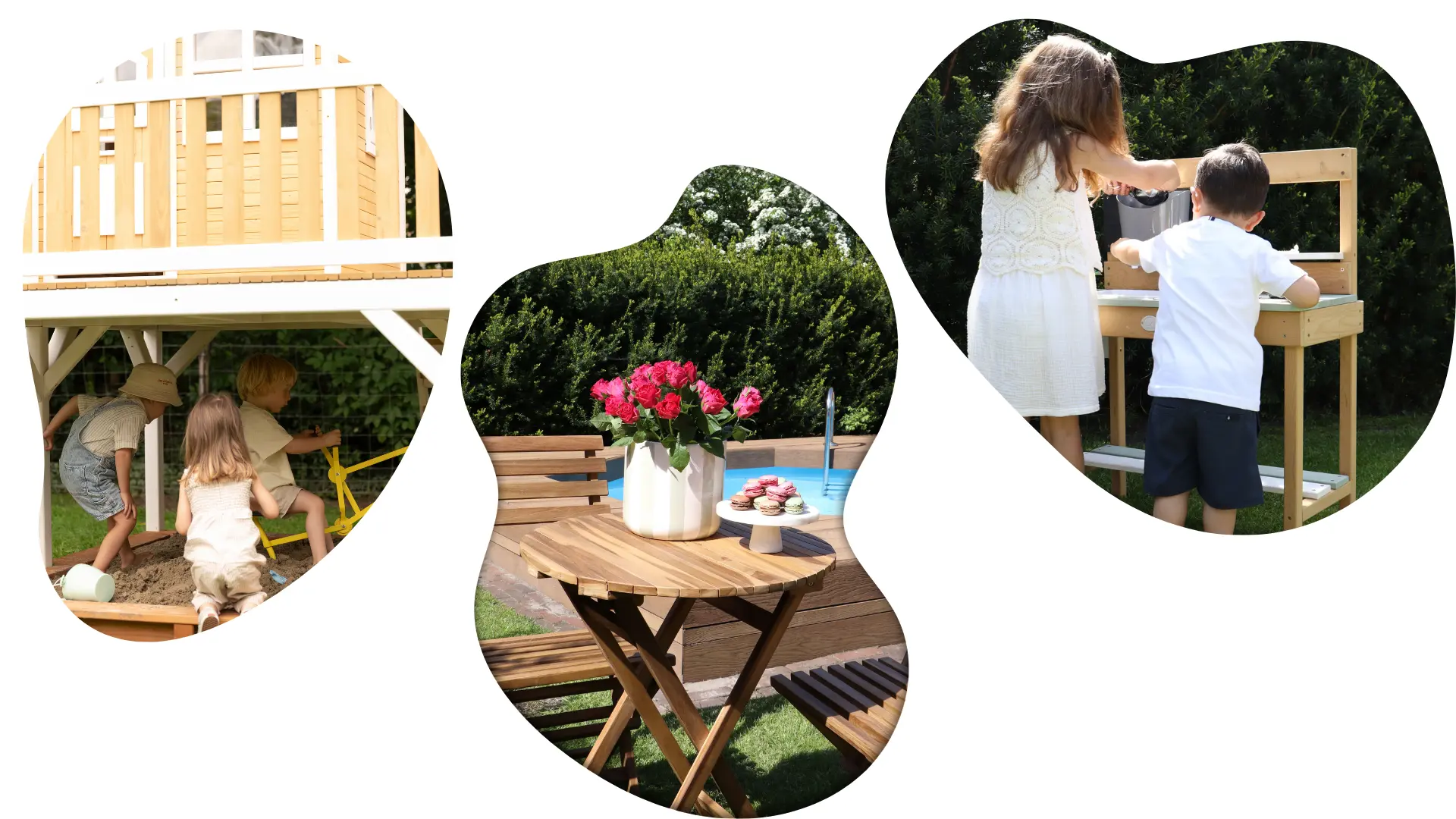 Genom att kombinera olika utomhusleksaker skapas nya lekvärldar. Placera till exempel ett vattenbord bredvid lekstugan eller en klätterställning vid sandlådan. Variation gör trädgården till en plats som aldrig blir tråkig.