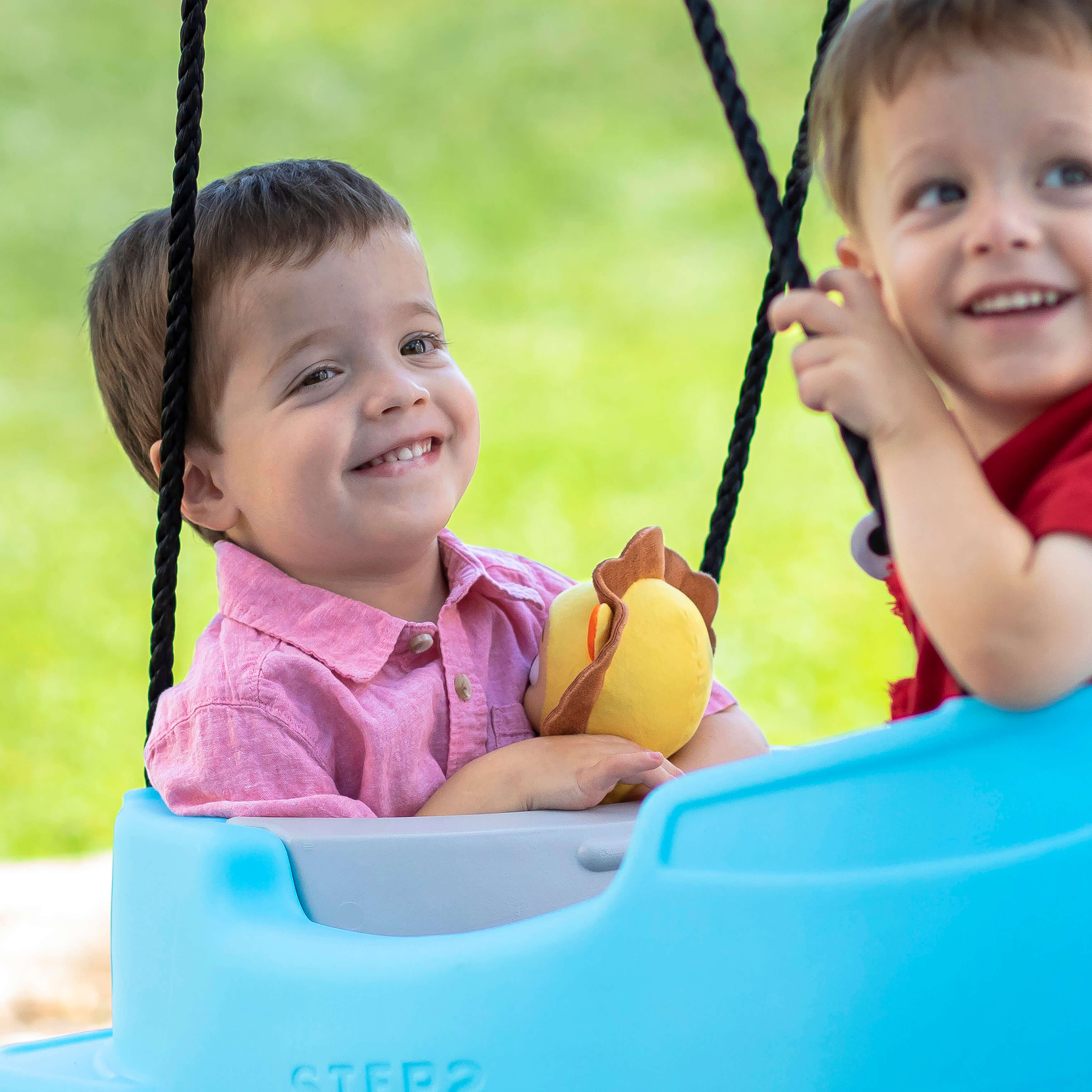 Låt dina barn flyga i den här gungan för två med raketmotiv! Förutom sin nostalgiska charm erbjuder denna gunga för barn en unik möjlighet till interaktion ansikte mot ansikte för två barn som gungar samtidigt, vilket bidrar till deras fantasifulla äventyr. Ensamåkare är också välkomna, med möjlighet att ta med ett gosedjur i den andra sitsen. Konstruktionen med dubbla väggar gör att den här gungan håller i många år framöver. Det högkvalitativa repet är väderbeständigt, men ändå mjukt för små händer. Repets längd är optimerad för 6 fot höga gungstänger. Lättmonterad hårdvara som kan användas på de flesta gungställningar. Säkerhetsbälten och en T-stång att hålla sig i ingår för en trygg och säker åktur.